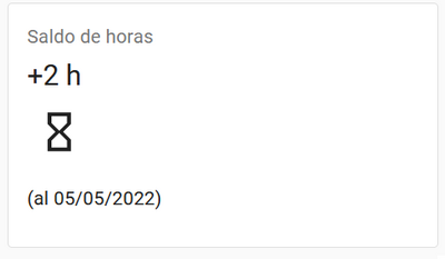 Esta tarjeta muestra el saldo de horas de el usuario. Indica la fecha correspondiente al valor del saldo.